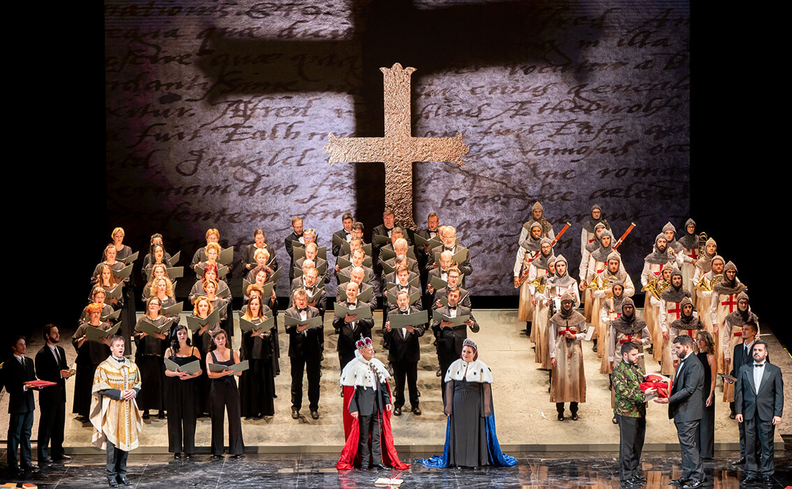 Por su parte, la batuta de Corrado Rovaris fue extraordinaria. El concertador bergamasco ofreció una electrizante versión de la ignota partitura belcantista; mezcló al punto justo la evidente tradición rossiniana con el naciente estilo donizettiano. De resaltar los más que correctos matices y tempi de la obertura, del concertante del primer acto y la escena de la coronación, donde la Orchestra Donizetti Opera respondió a los exquisitos requerimientos del también director musical de la Ópera de Filadelfia.