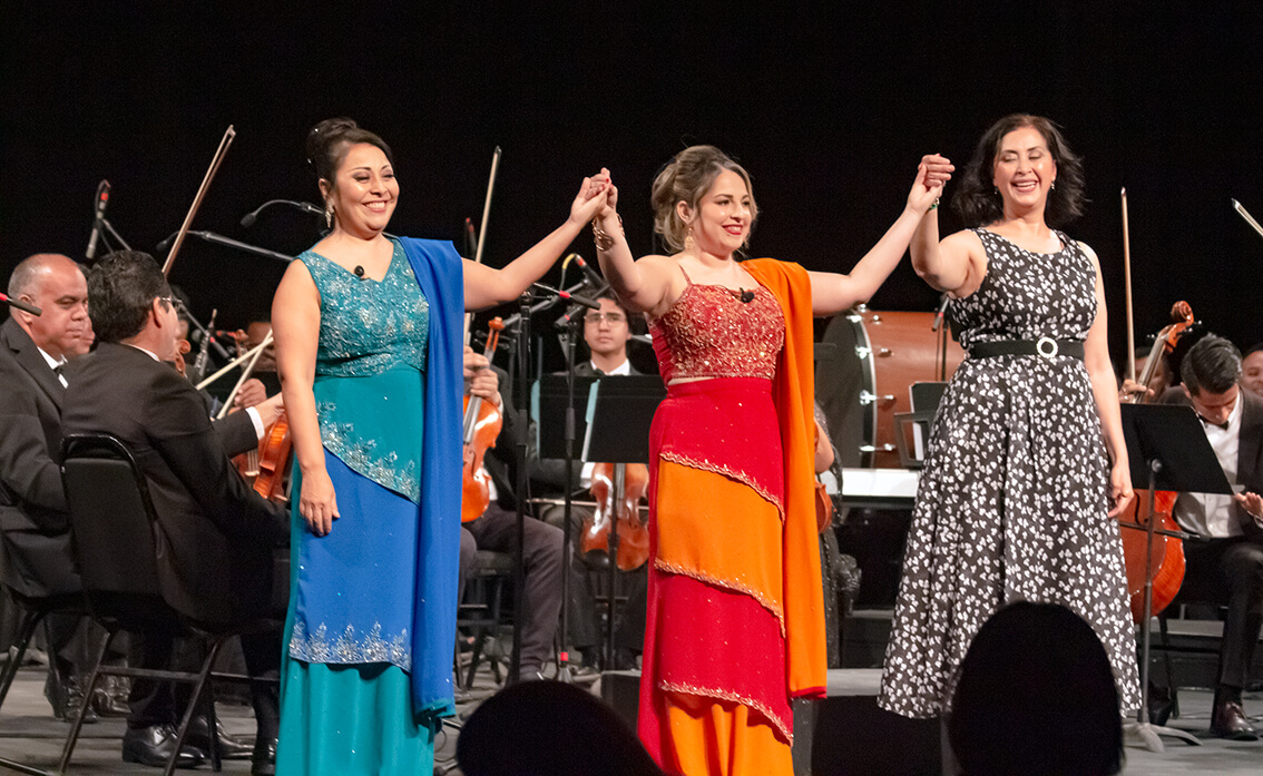 Ante el aplauso entusiasmado del público, las intérpretes, a quien se sumó el tenor Gregorio Arreola, ofrecieron como encore el brindis de La traviata de Giuseppe Verdi. Fueron más de 50 artistas en escena, incluido la Compañía Municipal de Coro, que dirige en lo artístico Noé Garrido y en lo musical Miguel Ángel García, partícipe en varios de los números del programa.
