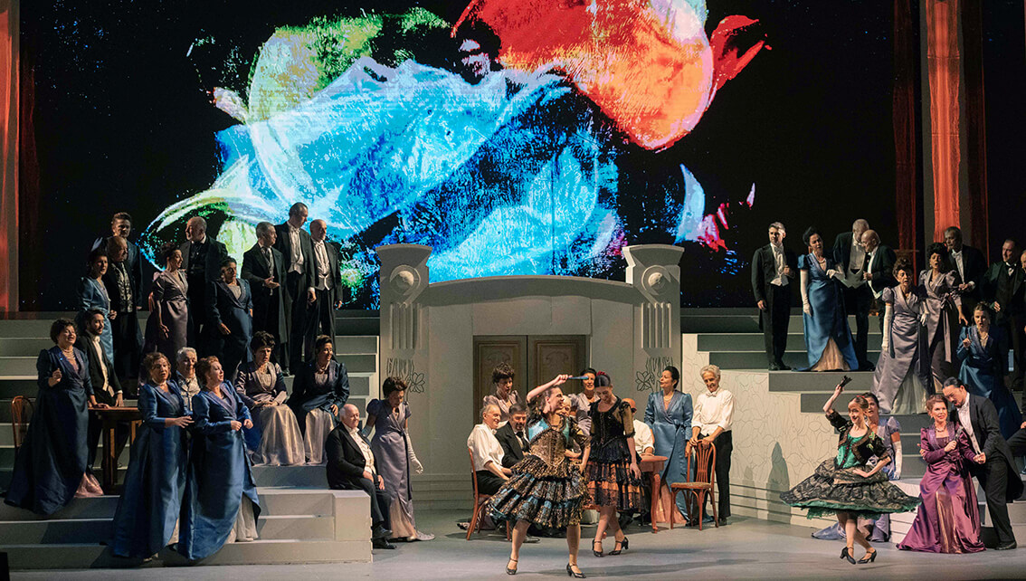 Septiembre 28, 2025. En el tercer acto, aparece la proyección a pantalla completa de un reloj antiguo, que marca el tiempo que le queda a Violetta. En un momento musical significativo, las manecillas caen y desaparecen de la vista del público, ¡justo cuando la vida terrenal de Violetta se desvanece!