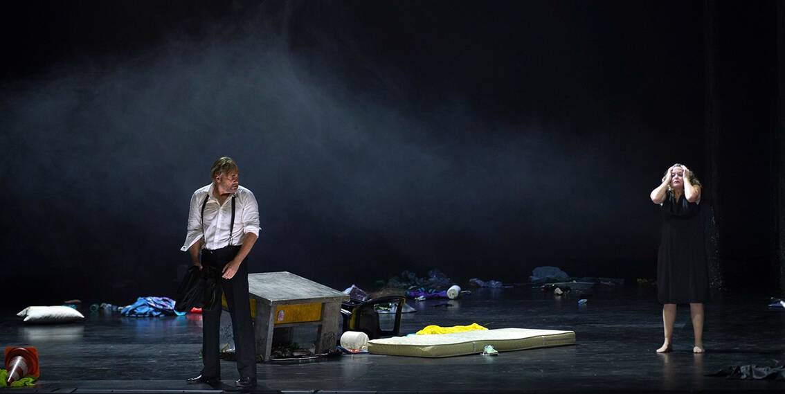 Christof Fischesser (Barbazul) y Evelyn Herlitzius (Judith) en El castillo de Barbazul de Bela Bartók en el Teatro Real de Madrid © Javier del Real