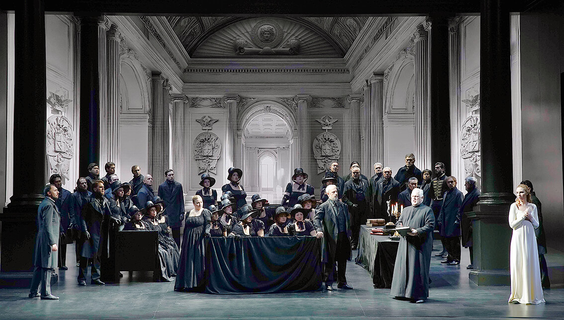 Escena de Stiffelio de Giuseppe Verdi en la producción de Pier Luigi Pizzi en el Teatro Municipale di Piacenza © Gianni Cravedi