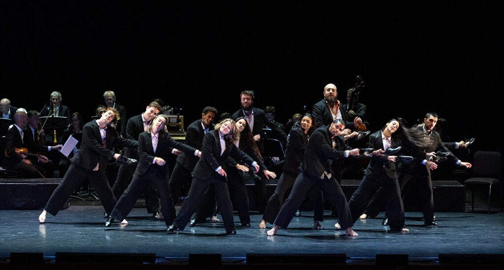 Sin embargo, Purcell compuso introducciones musicales para todas las escenas. Por ejemplo, inicialmente el Acto I no estaba musicalizado, pero el éxito de la obra ocasionó que, en su reposición en 1693, se agregara la escena del borracho, así como un par de arias. En la búsqueda de esa modernidad y con la idea de darle un aire más contemporáneo al montaje de esta obra, es lo que dio origen a la producción semi-escenificada presenciada en esta ocasión, que fue creada en 2023, y que se ha convertido en una de las cartas de presentación más populares y gustadas de la célebre agrupación francesa barroca Les Arts Florissants, que se unió con la compañía de francesa de danza contemporánea Compagnie Käfig, que dirige el director de escena y coreógrafo Mourad Merzouki.