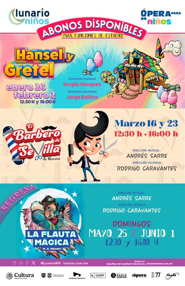 Pro Ópera ha copatrocinado las temporadas de ópera para niños que, en alianza estratégica con el Lunario del Auditorio Nacional, se han presentado desde 2024