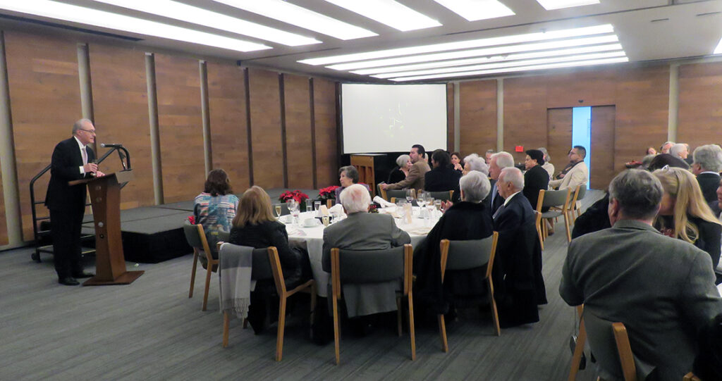 En la cena para celebrar el 40 aniversario de Pro Ópera, el presidente actual, José Luis Barros, hace un reconocimiento a los expresidentes © Pro Ópera AC