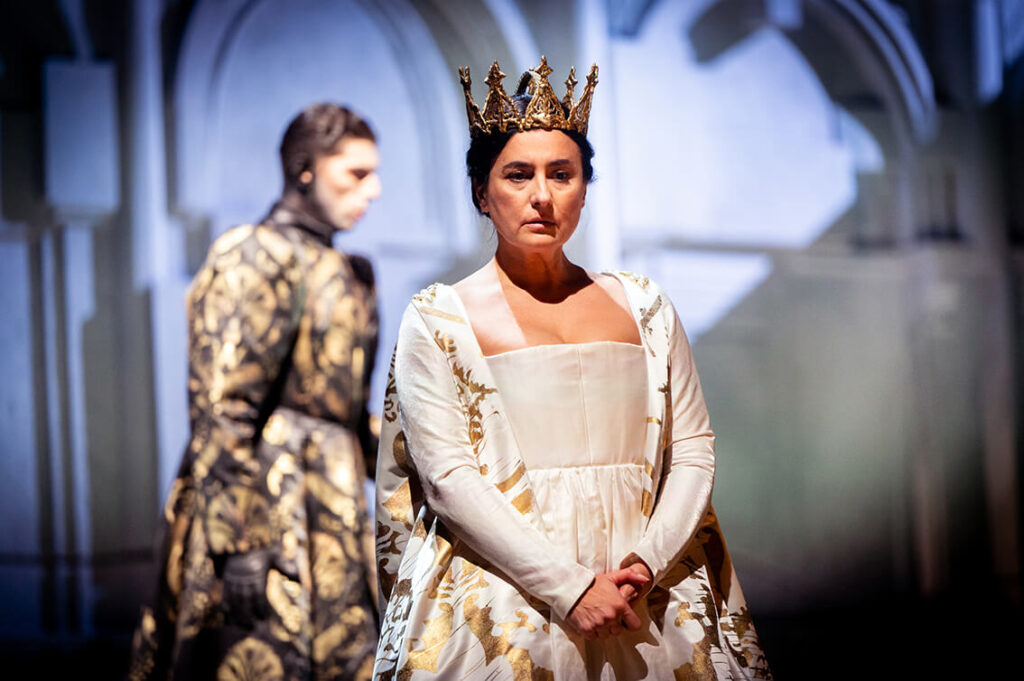 Escena de Caterina Cornaro con Enea Scala (Gerardo) y Carmela Remigio (Caterina) en el Donizetti Opera Festival de Bérgamo © Studio UV