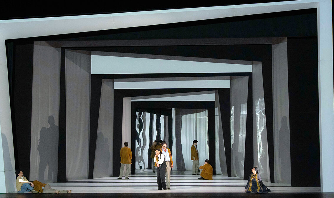 El espectáculo de Davide Livermore es notable en la dirección de actores y los movimientos y despliega fotos de los protagonistas y de las páginas de prensa que se les dedicaron en su momento. La doble de Callas es muy eficaz, pero hay demasiados Pasolini.