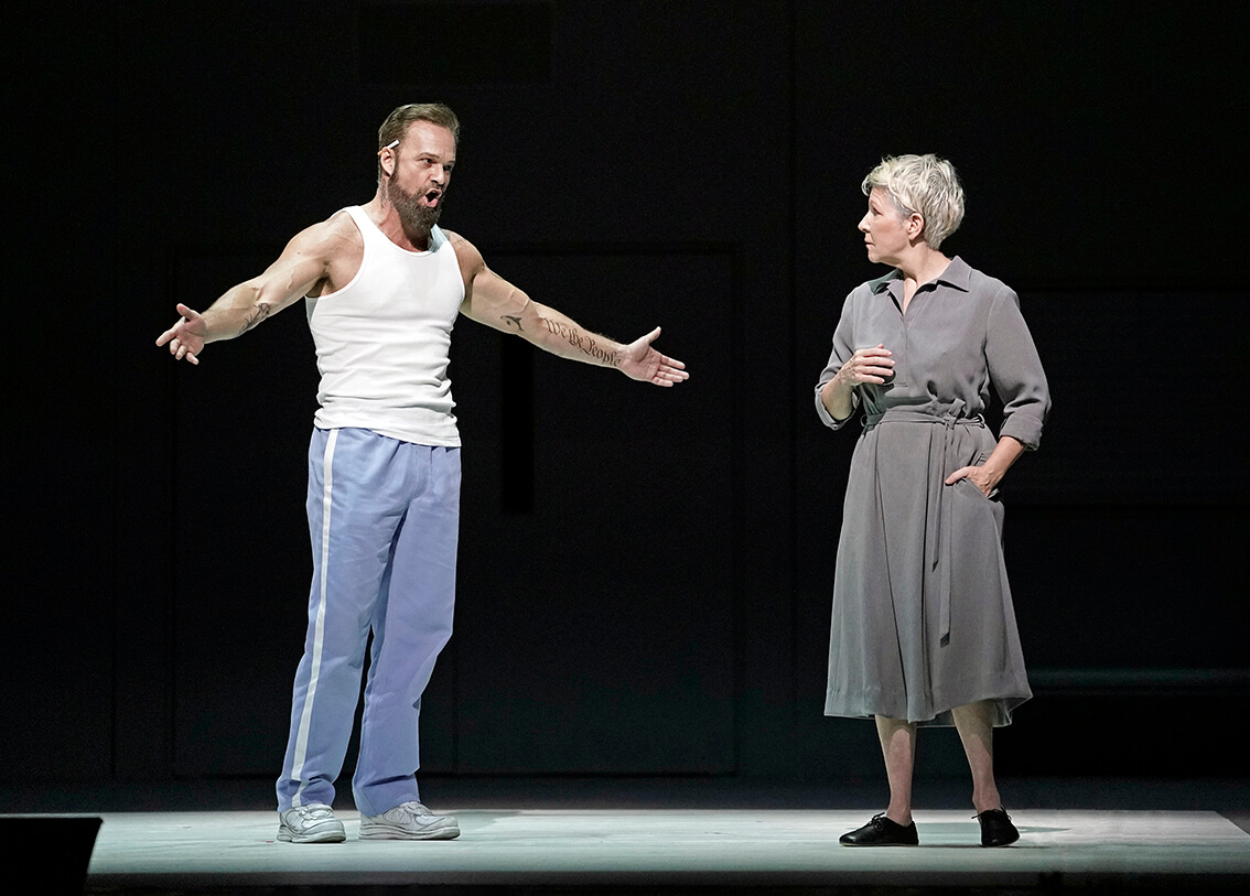 La nueva producción minimalista y psicológica encomendada al director belga Ivo van Hove convenció gracias a sus elaboradas marcaciones y al cuidado tratamiento luminoso de Jan Versweyveld. La idea de acercar al público lo que sucedía en el escenario mediante el uso de videos (Christopher Ash), ya sea pregrabados —toda la escena de la violación y los asesinatos— o siguiendo con cámaras portátiles a los protagonistas, fue más lo que distrajo que lo que aportó, buscando decir cosas que la música decía ya, a través de la orquesta. La desgarradora e hiperrealista escena final de la ejecución de De Rocher, donde el público pudo asistir con lujo de detalles al momento en que se le suministró la inyección letal, resultó un acertado golpe de efecto de parte del director de escena.