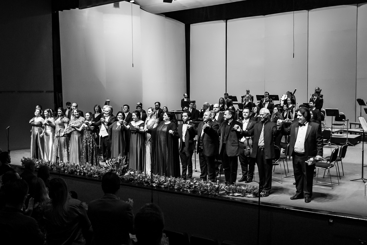 Como gran final, el elenco completo (con Natalia Blásquez y Evel Sandoval, quienes se estrenaron como parte de Canto en Escena) ejecutó el célebre coro ‘Va, pensiero, sull’alli dorate’ de la ópera Nabucco de Verdi, que resume el anhelo de libertad de un pueblo cautivo. El manejo de dinámicas fue muy efectivo de parte de las voces y de la orquesta, pero hubiera sido aún mejor que el tenor Sergio Blázquez moderara su volumen, que sobresalió del resto en todo momento.