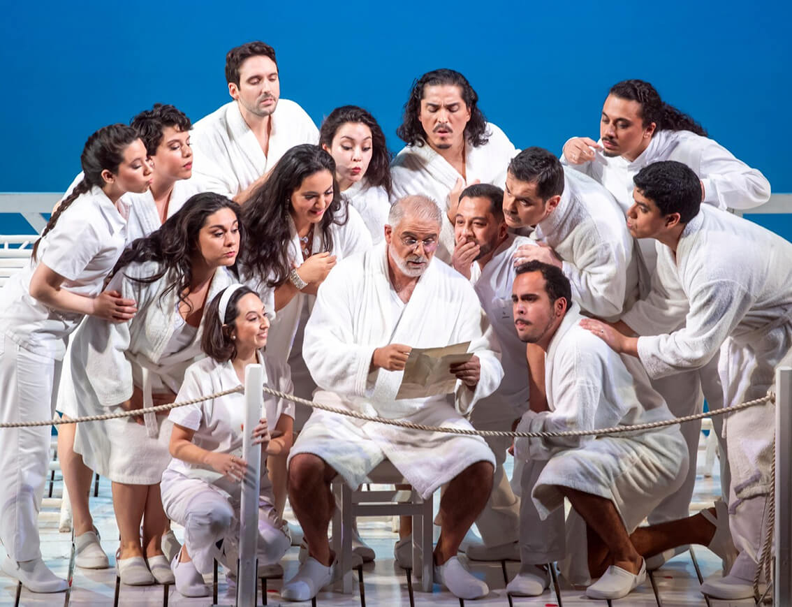 Entre los montajes de esta obra, uno de los que se ha convertido en un verdadero clásico a nivel internacional —y muy conocido y difundido a través de YouTube— es el que en 2001 creó para el Festival Rossini de Pésaro el reconocido régisseur español Emilio Sagi, que funcionó tan bien que desde entonces y a lo largo de dos décadas se vuelve a ofrecer ahí cada año, como instancia de aprendizaje para los jóvenes cantantes que participan de la Accademia Rossiniana (entre ellos, tres de los intérpretes chilenos de las funciones que comento acá) que se realiza anualmente en la época de ese evento musical.