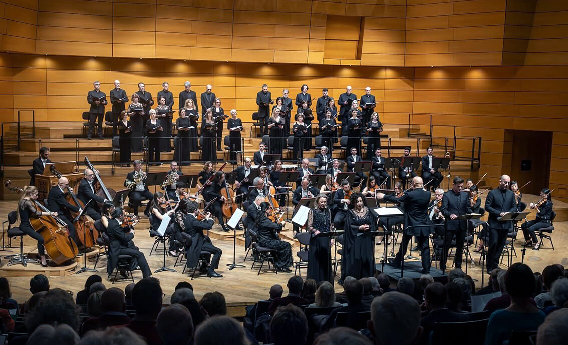 Fasolis, especializado en el repertorio barroco, supo resaltar con claridad la dimensión contrapuntística de la partitura sin sacrificar la vitalidad teatral que Mozart introduce constantemente en la escritura. Su batuta clara y rigurosa condujo bien a la Orchestra I Pomeriggi Musicali, que respondió con una sonoridad clara y flexible. Particularmente notable fue el trabajo de las maderas en el Et incarnatus est, donde el diálogo entre flauta, oboe y fagot adquirió una transparencia casi camerística. Las cuerdas, por su parte, mantuvieron una tensión rítmica muy eficaz en los pasajes corales más dramáticos, especialmente en el Qui tollis. El Coro della Radiotelevisione Svizzera mostró una gran solidez técnica, con una articulación precisa y un equilibrio entre las secciones, elemento fundamental en una obra donde el tejido coral es uno de los pilares estructurales.