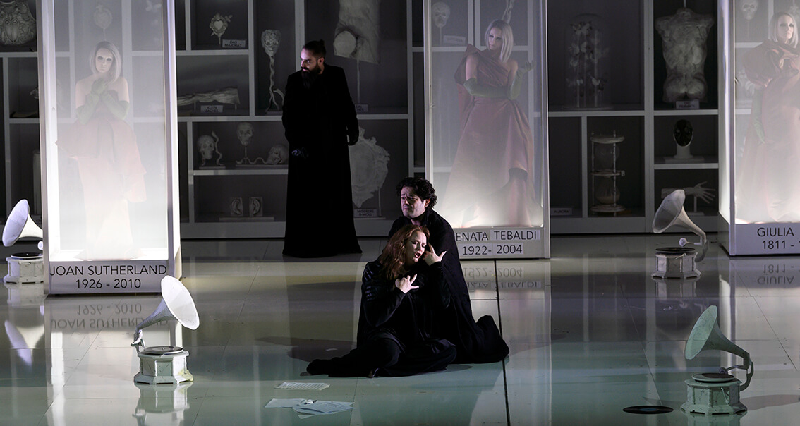 Noviembre 21, 2023. Se descubrió mucho de lo que quiso decirnos Stefano Poda —director de escena, escenógrafo, responsable del vestuario, de la iluminación y de las coreografías—, en el mismo momento de alzarse el telón de esta producción de Les contes d’Hoffmann de Jacques Offenbach.