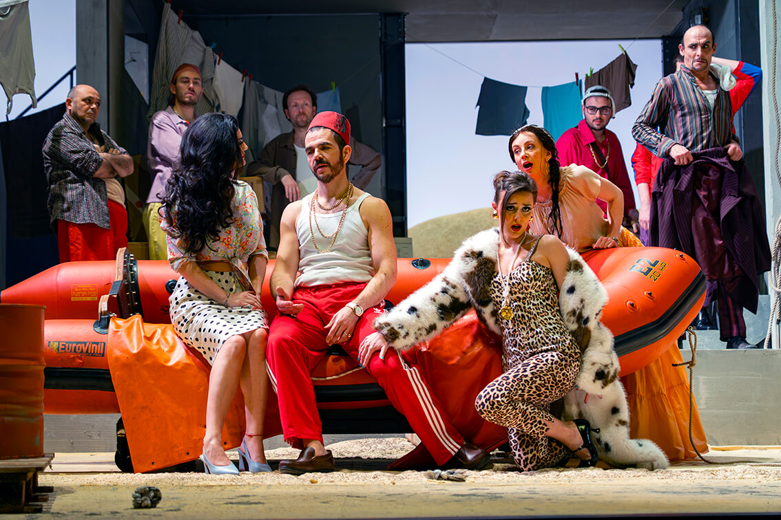 Sin entrar en posicionamientos políticos, es innegable que la inmigración ha marcado profundamente a los países de Europa central. Las periferias de muchas ciudades italianas muestran cómo ciudadanos del norte de África se han asentado creando paisajes improvisados, con construcciones precarias y materiales de baja calidad, a menudo sin una integración plena en la comunidad de acogida. En este marco, la propuesta de Fabio Cherstich resulta extraordinariamente actual: aunque recurre a prejuicios, clichés y estereotipos —por momentos políticamente incorrectos—, en una comedia escrita hace más de doscientos años estos elementos se revelan coherentes y sorprendentemente eficaces dentro de su actualización escénica.