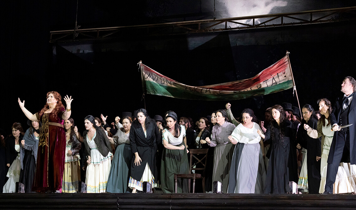 En esta ocasión, el titulo programado fue Norma, la tragedia lírica en dos actos de Vincenzo Bellini con libreto de Felice Romani. La ópera que se estrenó el 26 de diciembre de 1831 en la Scala de Milán se escuchó por primera vez en este teatro dos años después, en 1833, y desde entonces no ha dejado de ser representada en incontables ocasiones, teniendo siempre a las mejores intérpretes del papel principal, y cuya última representación ocurrió en febrero del 2020, apenas unos días antes de la cancelación de todas sus actividades del teatro a causa de la pandemia de Covid 19.