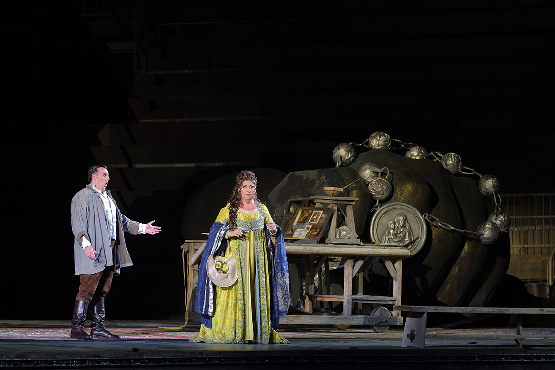 Septiembre 1, 2023. Con motivo del 100º Festival de la Arena de Verona, entre las diversas producciones vistas, también regresó Tosca en la ya famosa puesta en escena comisionada íntegramente a Hugo De Ana y presentada por primera vez en el anfiteatro hace 17 años.